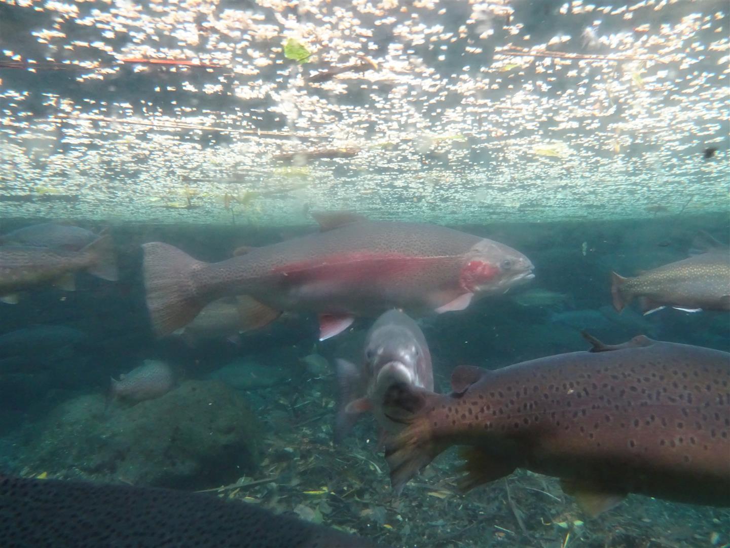 Our next stop was to Mitai Village for a Maori cultural performance and a traditional hangi meal. After an introduction by one of the staff we were directed along path, past a bubbling spring (Fairy Spring which is sacred to the Maori) with beautiful clear water, down to the river where we saw Maori warriors on a canoe. From there we went past part of the restored Maori village (or possibly a mock-up) and joined up with the Maori warriors in the performing area. The traditional challenge was given by the Chief and a designated spokesman responded on our behalf after which there was a show of traditional music, singing and dancing. It was a lovely show and the passengers
