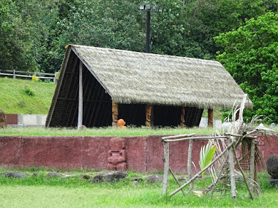 We drove down into Taipivai Valley and arrived at a site. I thought we had caught up with the convoy – only to discover there was another of guests – most of them from an earlier tour group. We had arrived a bit later than the others therefore the visit to the site was quite short. We barely had time to wander around the site, look at the arts and crafts or have refreshments. We were rushed and had no information of what the site was all about because I could not find our guide, Timi. (Later on I managed to find out where we had been - Te A’itua Temple.) Our driver, Louis, wasn’t helpful. I felt it was strange that he spoke a bit of English when he picked us up from the pier and at our first waterfront stop however when I asked him what the name of the site he suddenly didn't seem to understand English. A French couple tried to relay my question but they got some sort of an answer but didn’t tell me either.