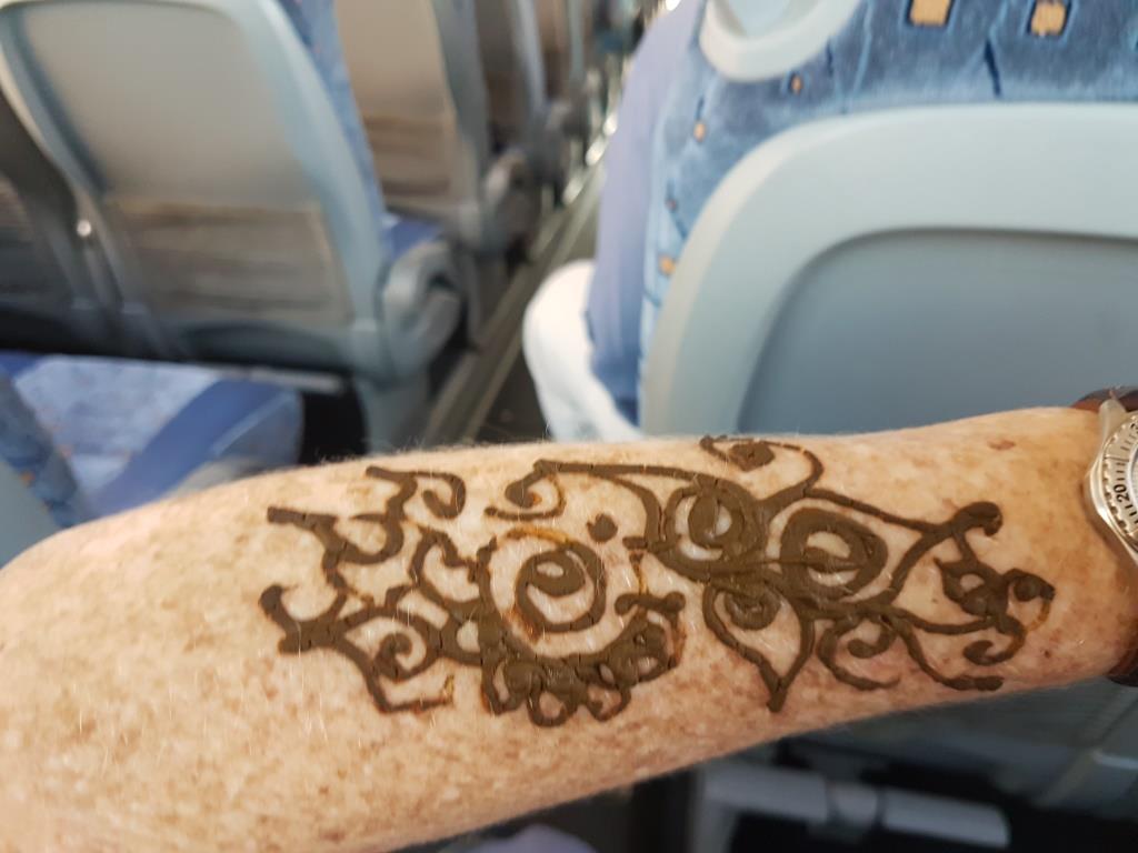 Feeling full and well nourished, we headed back to our bus for a short drive to our next stop, L’oudaya Kasbah, where we had a walking tour of a traditional medina or old town. The walled town's streets were narrow and cobbled, and a bit like a labyrinth. Our poor guide was genuinely concerned about stragglers getting lost, including me as I was bringing up the rear, and was constantly running up and down the group as we went along, counting and making sure that nobody had disappeared. I was with a woman whose sight wasn't good so progress was a bit slow. We passed by a few small shops and a few open air stalls selling leather goods and crafts. We stopped in the village square where mint tea was served. Sellers walked amongst us trying to sell small trinkets, and a woman tried to get guests to have a henna tattoo done. I didn't want one but the woman grabbed my hand and said it was for 'free' and then promptly demanded money after drawing a pattern on my arm. Needless to say I was not happy but gave her a bit of money. She demanded more but I showed her my empty purse as proof. A few guests did have a henna tattoo and they looked really pretty. Now I have to wait for the henna 'goo' to dry out and then I can brush it off. It should leave a red stained pattern afterwards which will last a few days.